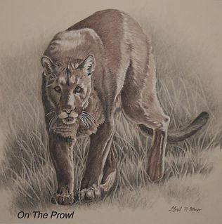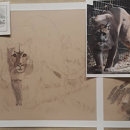 These are some progress pics of the piece called "On the Prowl". Its done in charcoal on pastel paper and its approximately 18 X 18 inches. See the finished piece on the original art page.