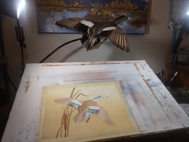 This is a small and simple project that's on 9 X 13 watercolor paper. I was fortunate to have a taxidermy mount to use as reference. This is of an American Wigeon in flight